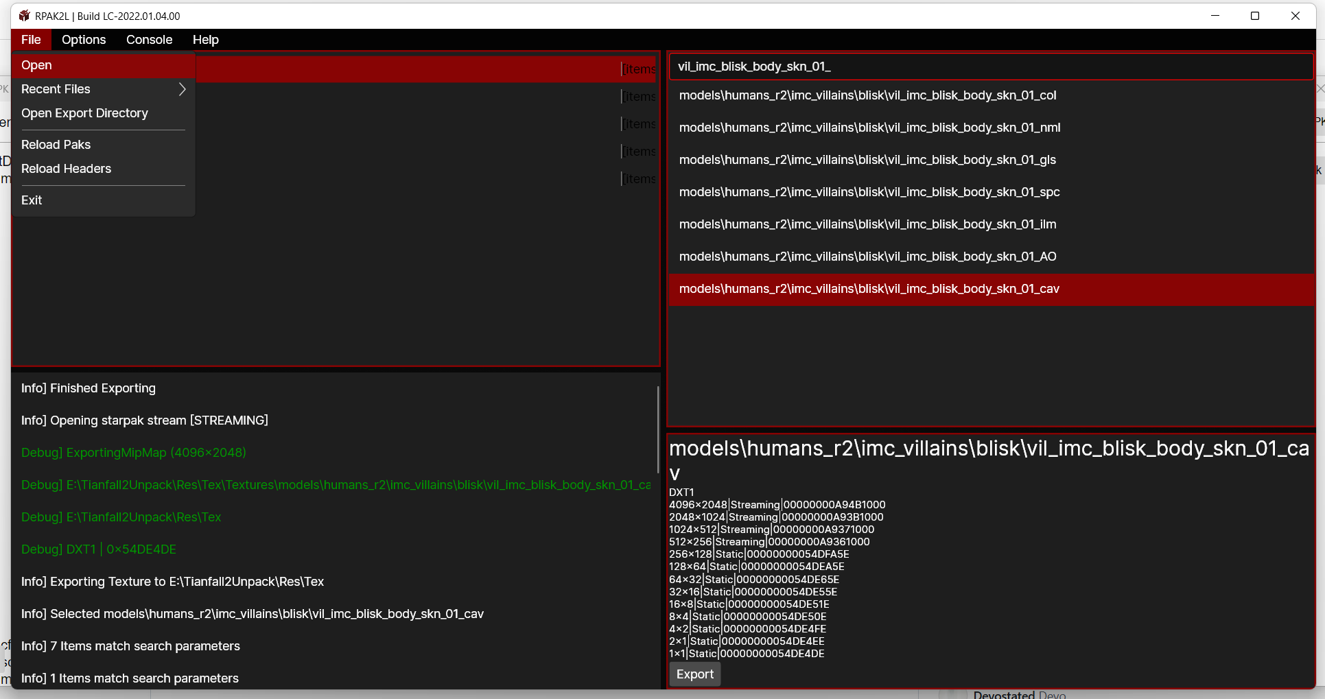 使用RPAK2l解包rpak获取贴图