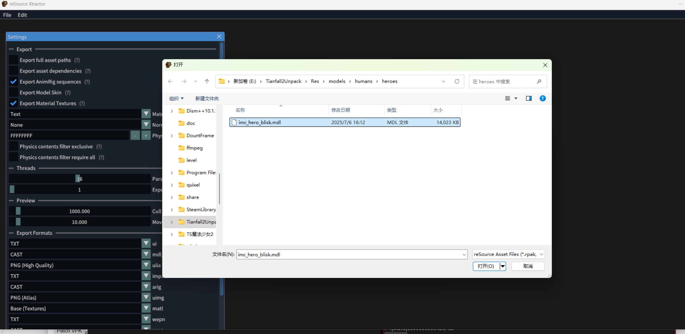 使用 rsx 将HarmonyVPK解包的mdl文件转化为cast文件